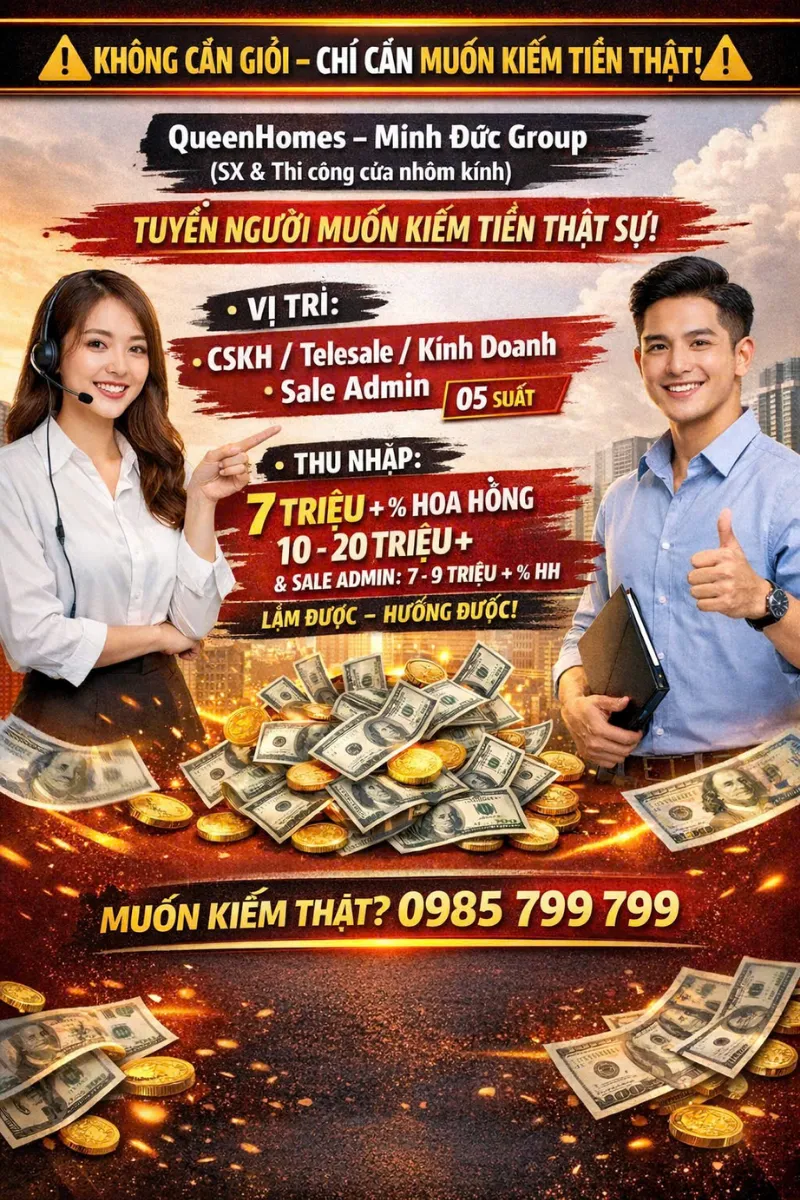 • Sale / CSKH: 7 triệu + % hoa hồng → 10–20tr+